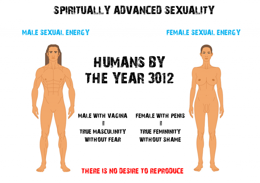 Currently a man has a penis and a woman has a vagina. We believe the configuration of our real chakra points tends towards a mathematical and scientific error which makes us grow as mutationally deformed. We are disabled. We have the wrong genitalia with a function of giving us pleasure and procreation.